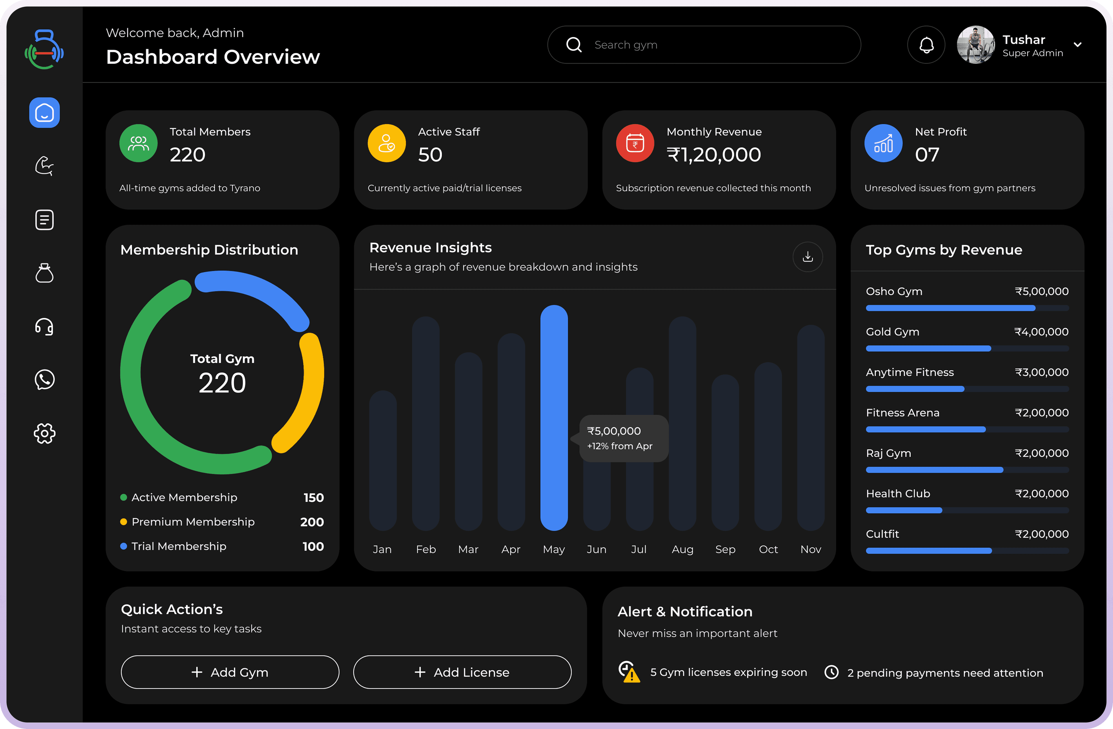 Whether you're a single gym, a school, or an enterprise, Tyrano grows with you, adapting to your scale and complexity.